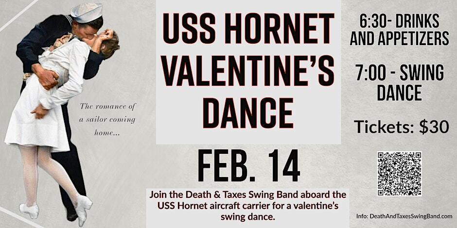 The USS Hornet is opening up its bulkheads and hatches for a 1940’s swing dance on February 14. This evening will feature drinks, dancing and a whole lot of nostalgia and romance. The Bay Area’s unavoidably swingin’ big band, the Death and Taxes Swing Band will provide an evening of great music for dancing or listening. Come as a couple or come to meet someone!