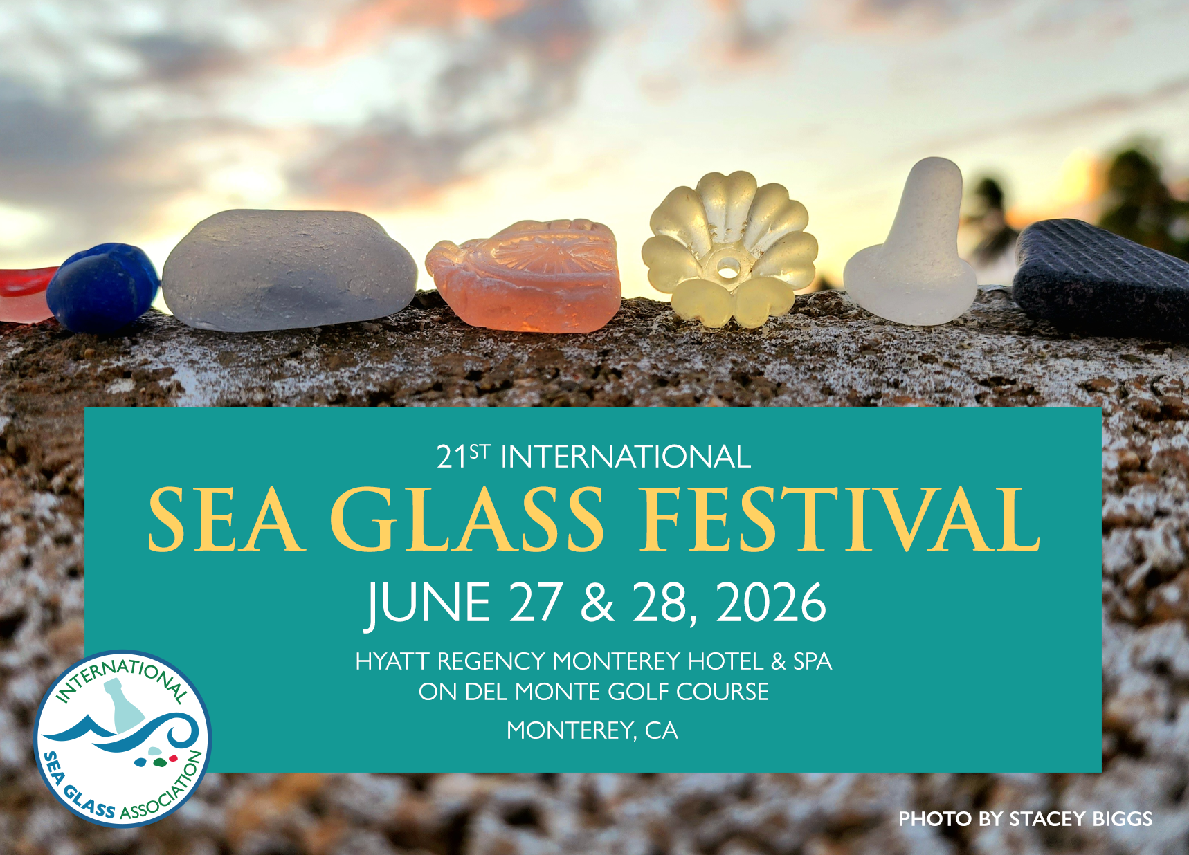 Join us for the highly anticipated 21st International Sea Glass Festival, hosted at the beautiful Hyatt Regency Hotel & Spa on the Del Monte Golf Course in Monterey, CA, on June 27-28,2026, in the Regency Ballroom. Experience an inspiring weekend surrounded by exquisite sea glass artistry, engaging presentations, children's activities, collector's corner, and the relaxed coastal elegance of one of Monterey's premier resort destinations.