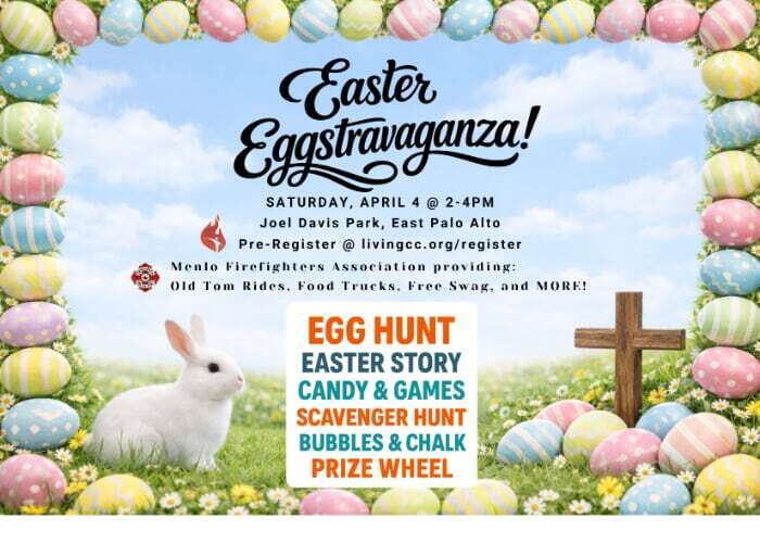 Celebrate the season with a massive egg hunt, scavenger hunt, and exciting prize wheel games. Enjoy food trucks, free swag, and Old Tom rides provided by the Menlo Firefighters Association, along with bubbles, chalk, and family-friendly stories. Pre-registration is requested for this afternoon of community fun.