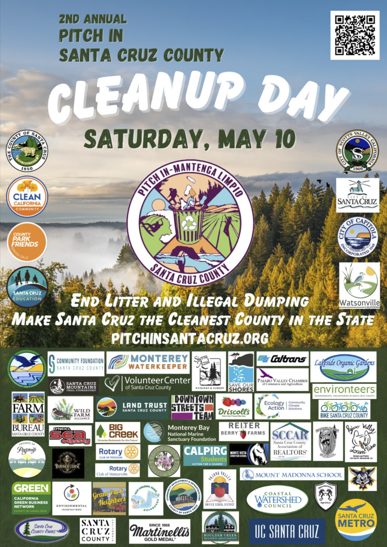 May 10th marks the biggest community cleanup day in Santa Cruz! End litter and illegal dumping - make Santa Cruz the cleanest county in the state! Individuals, groups and organizations are welcome to participate. Visit pitchinsantacruz.org for more information.