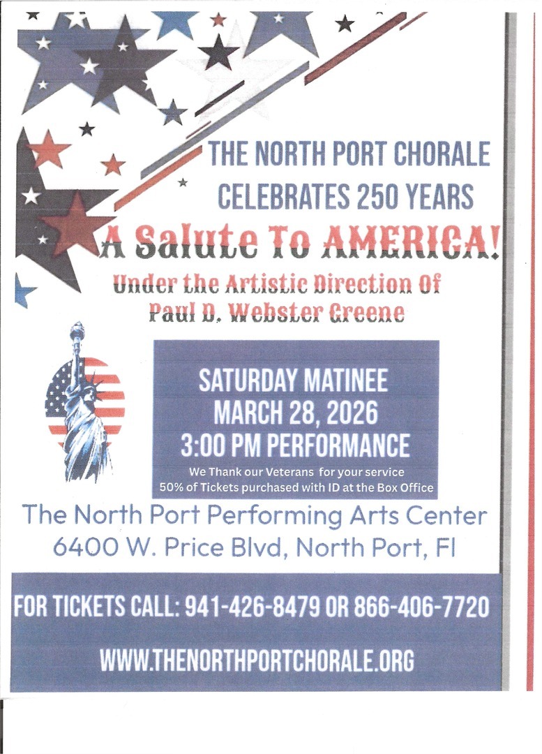Saturday Matinee, March 28, 2026 3:00 PM performance at The North Port Performing Arts Center 6400 W. Price Blvd, North Port FL.