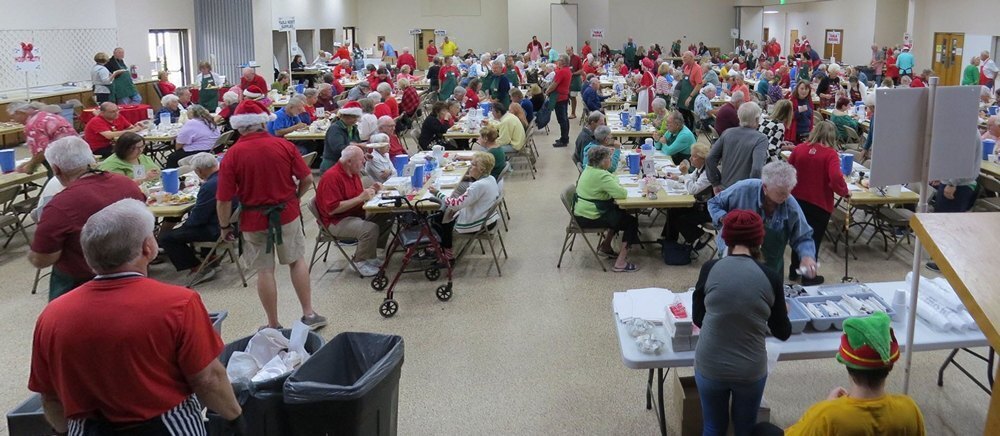 The community is invited to just show up for the 34rd annual free Englewood Methodist Church Christmas Dinner on Christmas Day in Fellowship Hall, 700 E. Dearborn from 11:00 a.m. - 2 p.m. only. Joy and music fill the air as hundreds of cheerful volunteers quickly seat guests to eat the turkey feast seated restaurant-style only. No take out service. Only for free delivery also on the 25th to homebound area residents, call now before 5:00 p.m. Christmas Eve, leaving just name and phone number at 941-474-5588 extension 101 for a call-back. Donations are appreciated.
