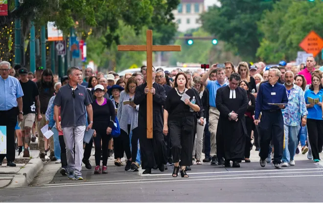 Twenty-seven Ministers of fourteen Denominations will participate in the Good Friday, Stations of the Cross down the center of Main Street Sarasota. With four Ministerial Associations and denominational prelates participating, over 100 congregations are represented. This Good Friday,