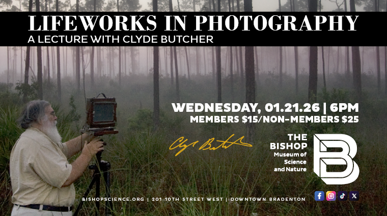 Through powerful images from across the United States and Florida, Clyde reflects on his photographic process, the challenges and rewards of working in the natural world, and how his career led him into environmental conservation. The lecture offers both a personal retrospective and a visual journey through places that have shaped his life and work.