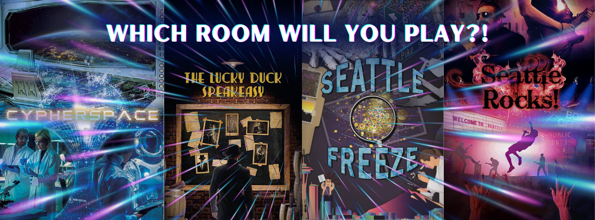 Go undercover as detectives in The Lucky Duck Speakeasy, where you’ll infiltrate the notorious Muddy Waters Gang and race to diffuse a bomb they’ve left behind. Retrieve a lost data probe from a wormhole and analyze the findings before your ship is irradiated in Cypherspace. Conduct a paranormal investigation in Seattle Freeze to uncover the counter-spell that will freeze the city’s statues—like the Fremont Troll, Chief Seattle, and the Car Wash Bears—before they come to life at midnight. Or outsmart the devil himself in Seattle Rocks, where you’ll break into music mogul Griff Rockman’s office to find and destroy a soul-binding contract.
