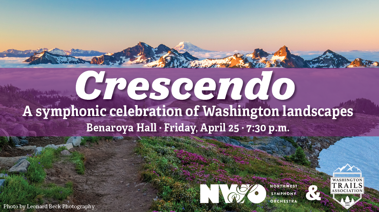 Join Washington Trails Association and the Northwest Symphony Orchestra for Crescendo: A Symphonic Celebration of Washington Landscapes. Delight in an evening of live music paired with stunning hiker photos from WTA’s annual Northwest Exposure Photo Contest.