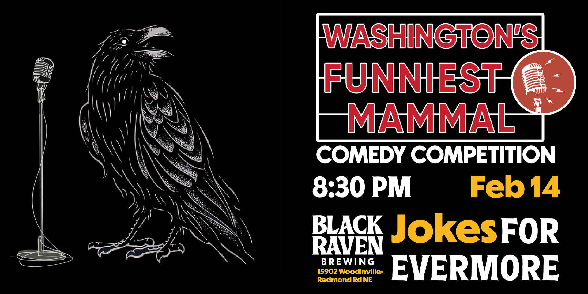 Feb 14! A live comedy competition experience! Semi Finals! Complete with audience INTERACTIVE VOTING systems; Washington’s Funniest Mammal Comedy competition Semi Finals continues at Black Raven Woodinville! YOU’RE a comedy judge; the final boss! But you’re also the hero. You’re making or breaking someone’s dream; A room full of comedians desperate for their shot at the $2,500 top prize in finals! Are they making it through the semi finals? You’ll help decide!