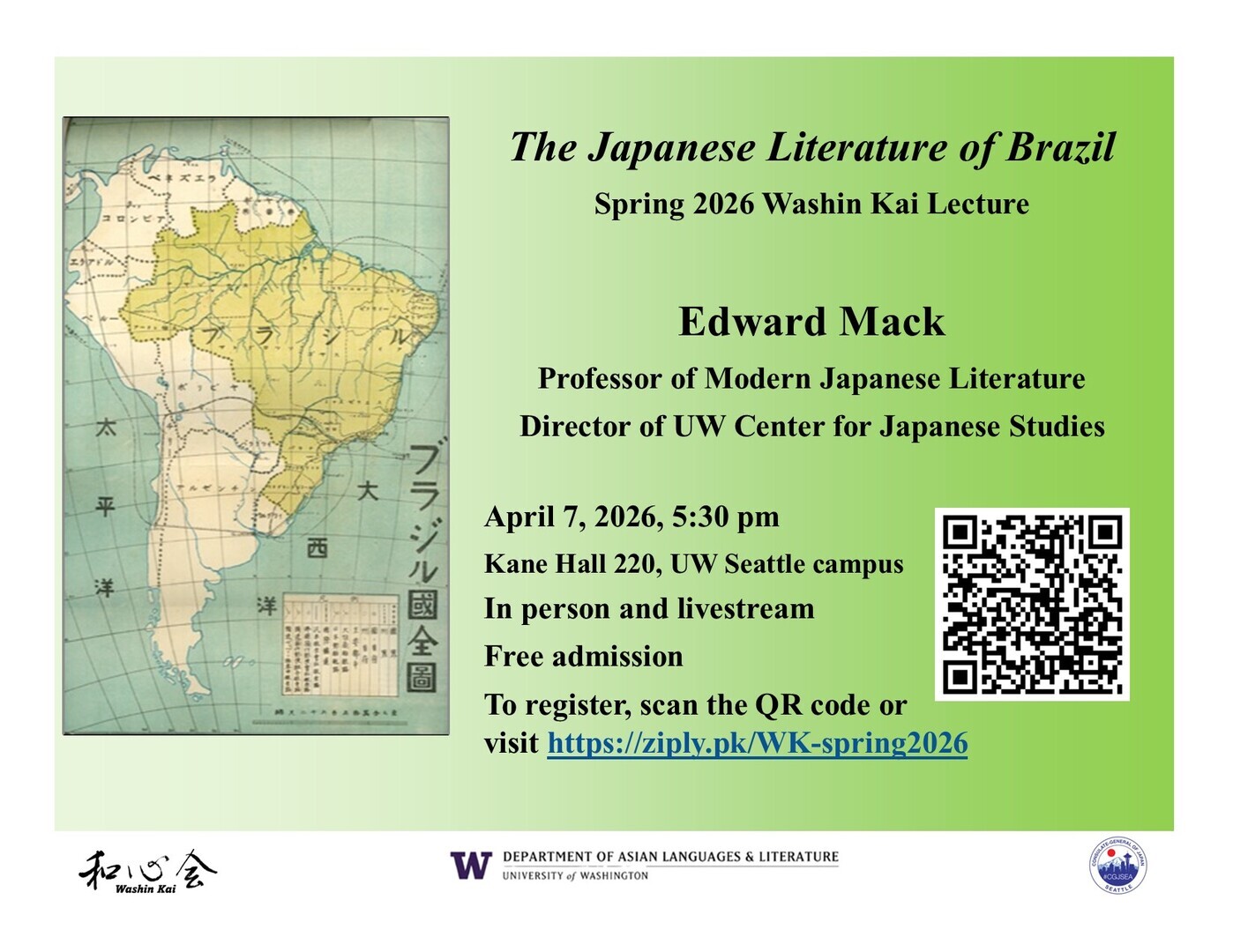Registration is required for both in-person and online attendance. Register at https://events.uw.edu/event/WashinKaiSpring2026/summary.