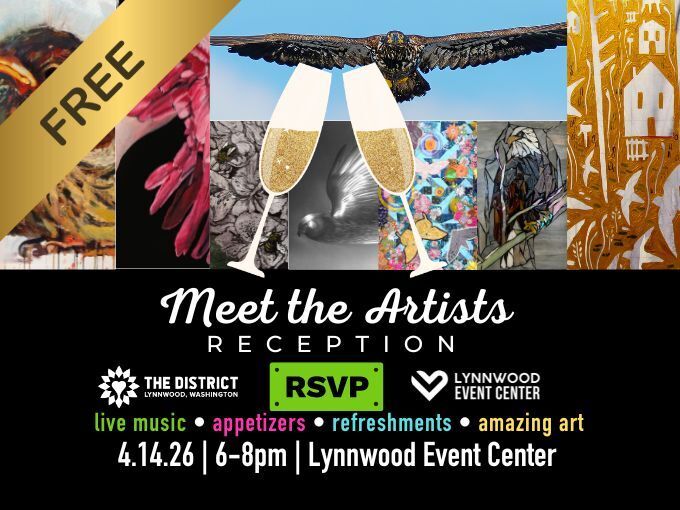 The Lynnwood Event Center at The District warmly invites you to our spring “Meet the Artists” Reception, an evening showcasing our latest art exhibit, "Flight Patterns: The Art & Motion of Winged Life." Taking place on Tuesday, April 14th from 6-8pm at the Lynnwood Event Center, this is a free and fun community event not to be missed!