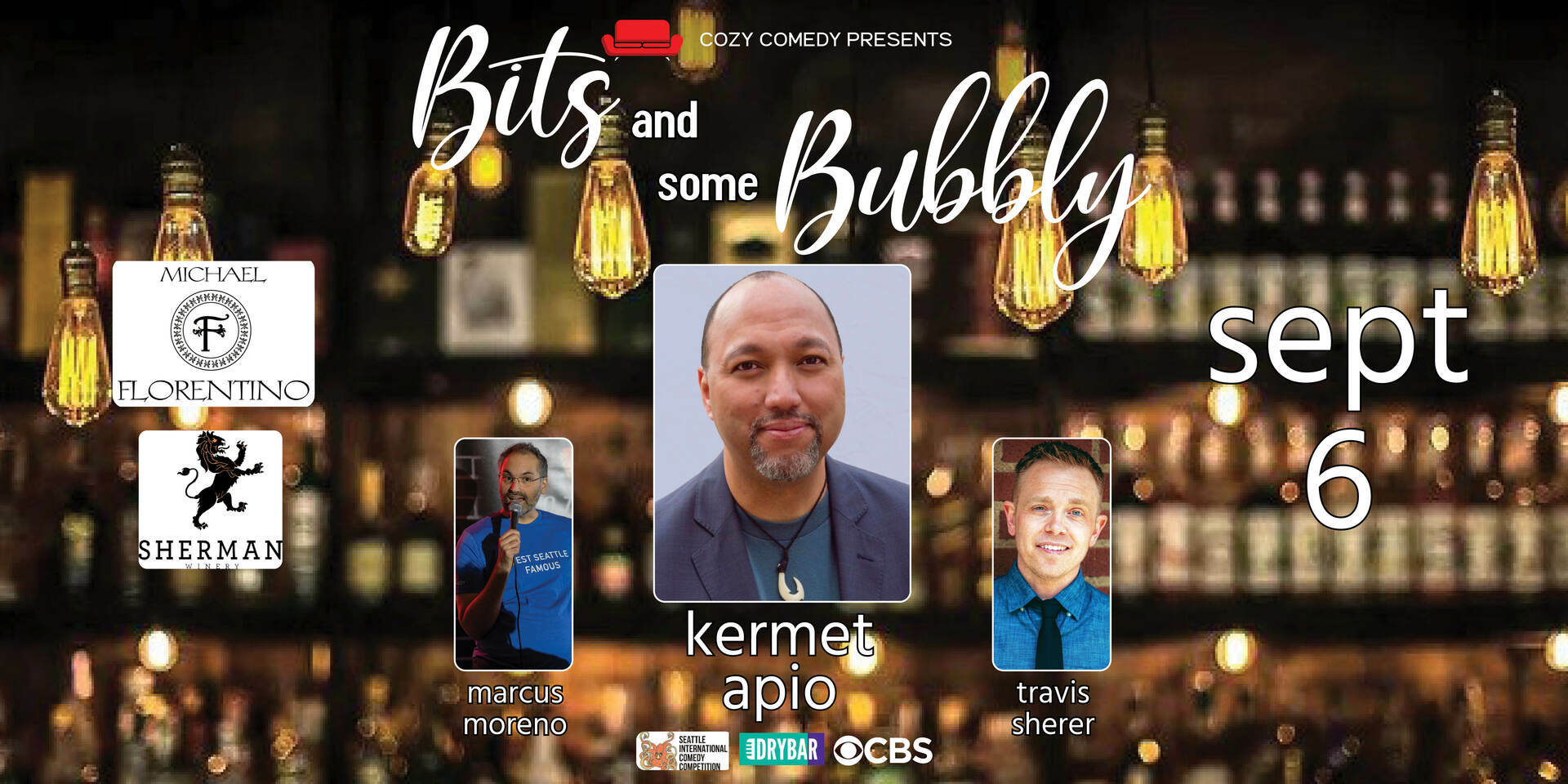 Fri Sept 6! Cozy Comedy productions brings you national headliner and PNW comedy gem Kermit Apio (CBS! Drybar!) for an amazing evening of intimate comedy in the heart of SODO!
