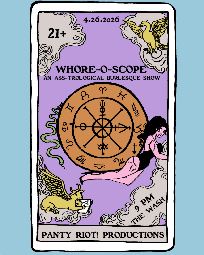 Join Panty Riot! Productions at The Wash Bar for a night of ass-trological burlesque.Starring:Sherwood Ryder - TaurusAnna Anesthesia - AquariusFeather Fatale - GeminiJue Vé Jones - ScorpioAwhoreaphobia - PiscesThe Burlesbians - Pisces + VirgoThis show will feature a raffle where you can enter to win a variety of prizes benefitting mutual aid!Please be aware that there will be a hired photographer(s) at this event who may utilize bright flash. If you have any sensitivity to flash, please take precautions.If you would like yourself removed from any image taken, please inform the photographer after the event, before they exit the venue. Panty Riot invites art that is messy, radical, and out of the box. We believe burlesque should be an accessible art form, and commit to building an inclusive space for all bodies and identities to create within. Panty Riot Productions uses burlesque as a form of protest, a vehicle for liberation, to create the future we want to see.21+ BRING LEGAL ID