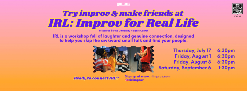 Improv for Real Life is an improv-based workshop for making friends in Seattle. Hosted at the historic University Heights Center in the U-District, this participatory workshop will help you build your community and fight the Seattle freeze.
