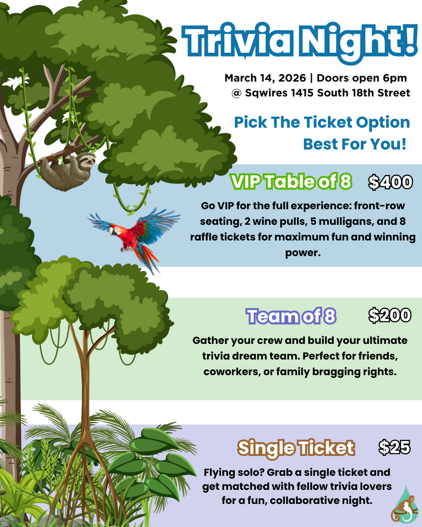 All proceeds from the event directly support Friends of the Rainforest’s mission to protect tropical rainforests through education, conservation, and community partnerships. Funds raised help sustain our free environmental education programs that bring the wonder of the rainforest to classrooms and community groups across the St. Louis area, inspiring the next generation of environmental stewards.