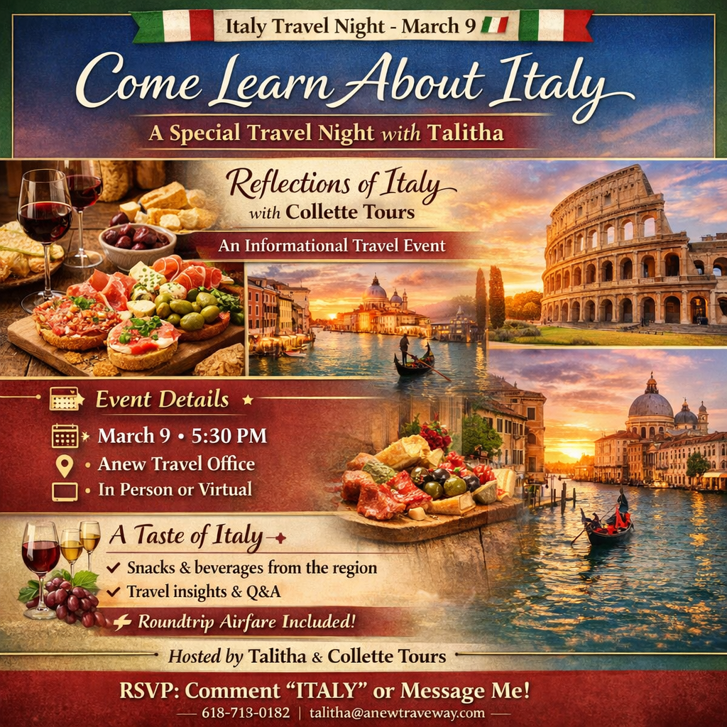 ✨ This is a relaxed, informational evening designed to inspire you, answer questions, and help you decide if an Italy adventure is right for you.