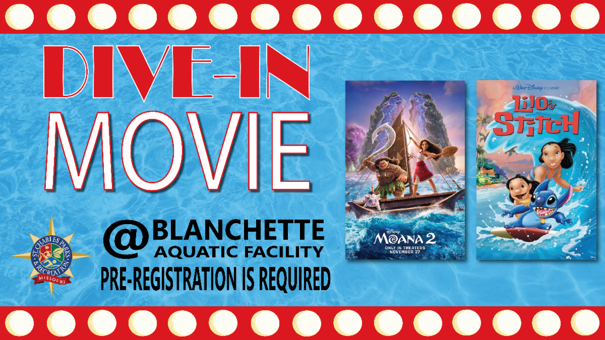 A Dive-In Movie is from 7:30-10 p.m. on Friday, Aug. 1 at the Blanchette Aquatic Facility, 1900 W Randolph Street in St. Charles. Lounge poolside while watching a family movie. Aug. 1 - Lilo and Stitch. No outside food or drinks. Tickets are $12 per person and must be purchased in advance at stcharlesparks.com.