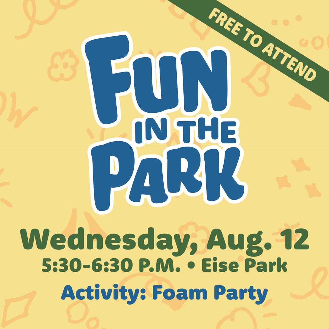 HomeEventsFun in the Park Fun in the Park Wednesday, August 12, 2026 5:30 PM - 6:30 PM 5:30 PM - 6:30 PM See all dates and Times Eise Park Parking Deals Get a Ride LYFT UBER Add to Calendar 08/12/2026 05:30 PM 08/12/2026 06:30 PM America/Atikokan Fun in the Park Explore the parks in Maryland Heights this summer with the Parks & Recreation staff. We will visit Parkwood, Vago and Eise Parks with activities and snacks at each event (while supplies last). Activity: Foam Party FREE TO ATTEND Details & Tickets: https://www.upcomingevents.com/st-louis/events/eise-park/fun-in-the-park-638500?ref=uceaddevent Eise Park, 12103 Bourbon Street, Maryland Heights, MO, 63043 Set Reminder Categories Benefits Charity, Fundraising & Charity, Good For Families, Kid-Friendly, Kids & Family, Neighborhood, Politics & Activism Explore the parks in Maryland Heights this summer with the Parks & Recreation staff. We will visit Parkwood, Vago and Eise Parks with activities and snacks at each event (while supplies last). Activity: Foam Party FREE TO ATTEND