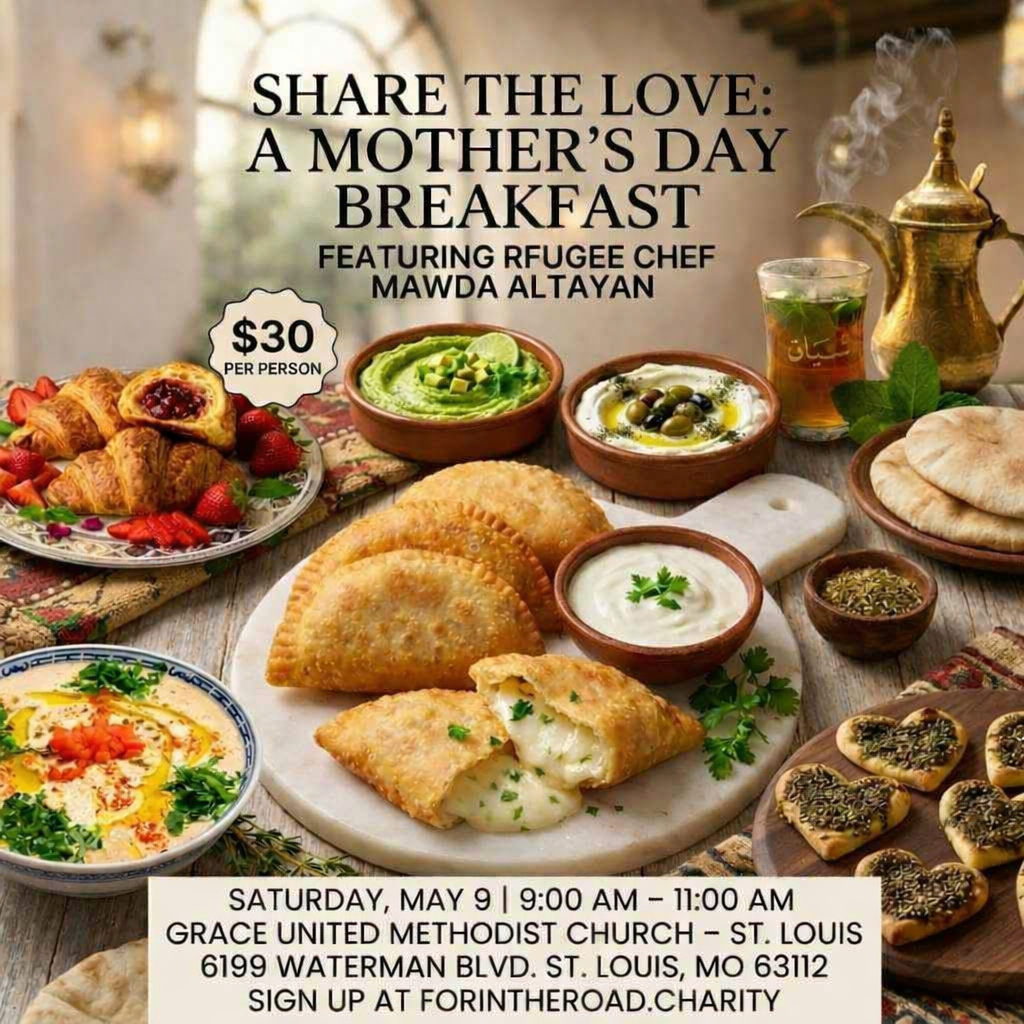 This Mother’s Day, join the Fork in the Road Foundation for a breakfast that nourishes both the heart and the palate. We’re gathering at Grace United Methodist Church for a vibrant celebration of culture, community, and the incredible culinary talents of our refugee chef, Mawda Altayan.