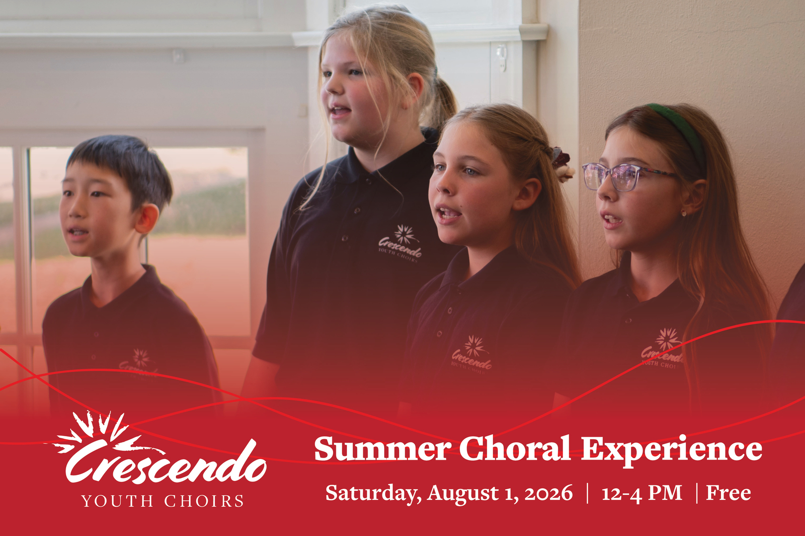 Join Crescendo Youth Choirs for an afternoon of musical exploration. On Saturday, August 1, from 12-4 pm, singers in grades 1–12 are invited to explore new songs, play interactive games, and meet new friends at our one-day choir camp. This hands-on experience is designed for all skill levels and concludes with a public performance for friends and family. It is a great opportunity to find your voice and enjoy making music with others. For those interested in joining us long-term, singers are welcome to audition for the 2026-2027 season during the afternoon.
