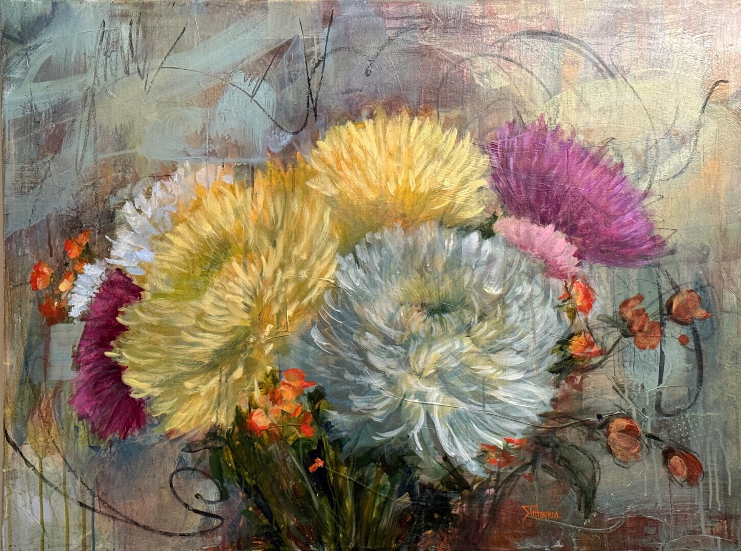 Her show focuses on florals, exploring each with emotional depth and a strong sense of composition. Since 2013, plein air painting has become central to her practice, allowing her to capture nature’s fleeting moods in real time.