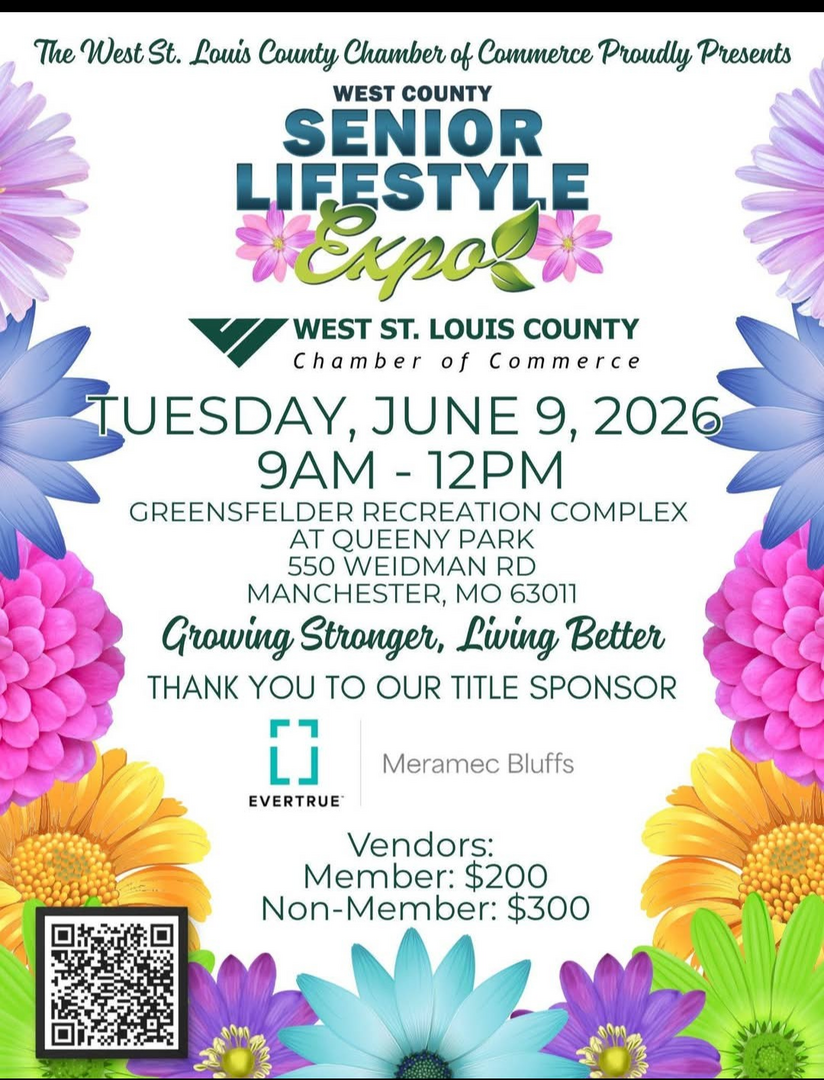 The West County Senior Lifestyle Expo is from 9 a.m. to noon on Tuesday, June 9 at the Greensfelder Complex in Queeny Park, 550 Weidman Road in Manchester. Presented by The West St. Louis County Chamber of Commerce, the event features over 100 businesses, door prizes, giveaways, food sampling and more. For details, email [email protected].