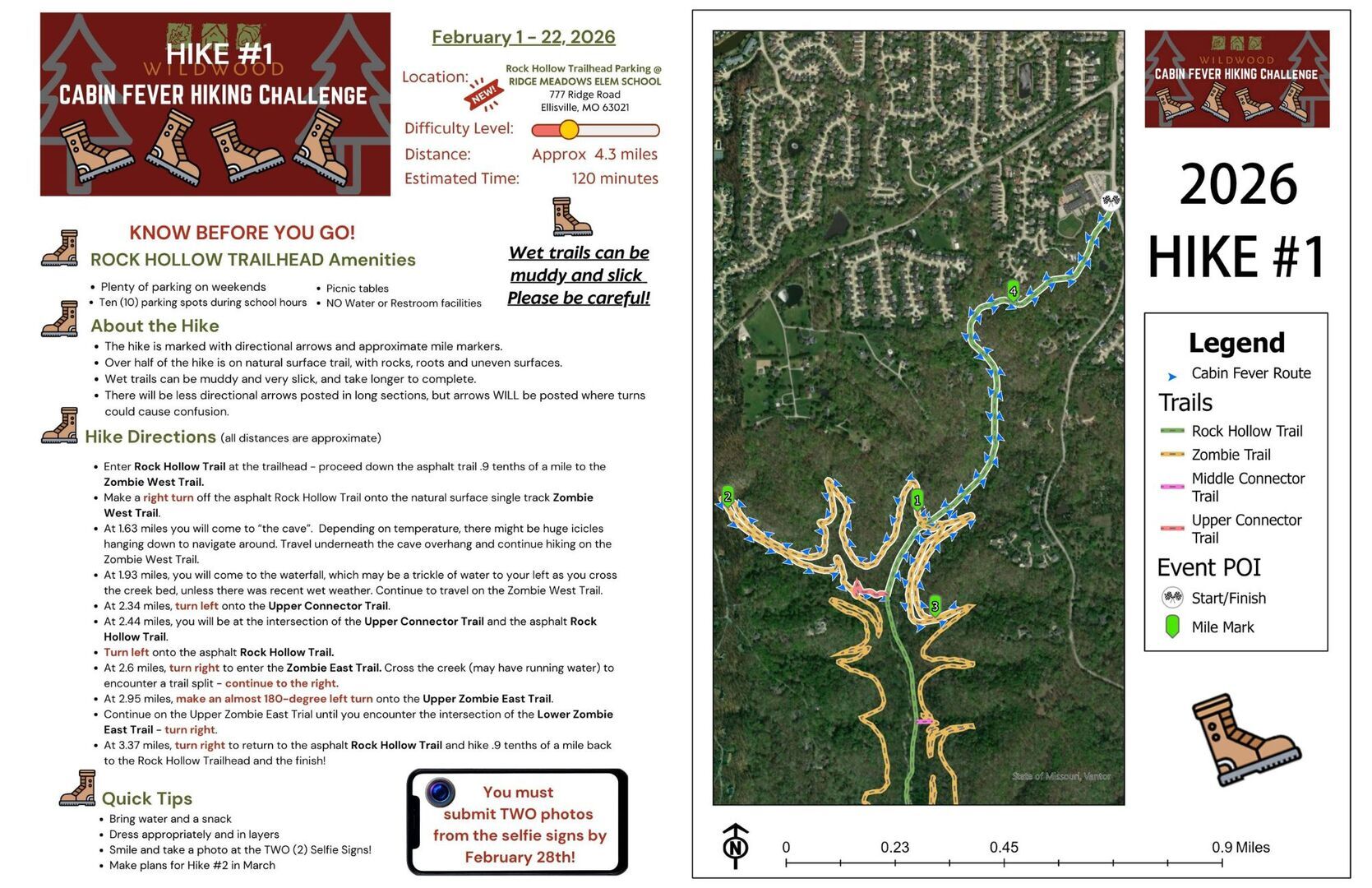 City of Wildwood’s Cabin Fever Hiking Challenge. Hit the trails anytime between February 1 through February 22, to complete Hike #1. Show that you hiked the route by submitting photos from the designated Selfie Stations along the way. Hike a new route in March (March 1 through 22.) Complete both hikes to earn your Cabin Fever Hiking Challenge T-shirt 2026 Special Edition. For details, visit cityofwildwood.com/DocumentCenter/View/10736/Cabin-Fever-2026-Map-Details.