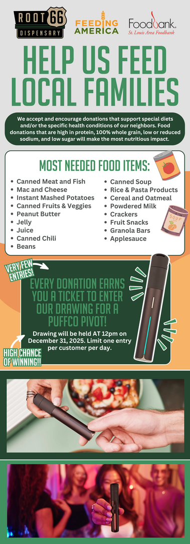 Root 66 Dispensary has partnered with Feeding America and the St. Louis Area Foodbank to launch a community-wide holiday food drive dedicated to supporting local families facing food insecurity. The initiative invites customers and community members to donate shelf-stable food items throughout the season, with an emphasis on nutritious options such as high-protein, whole-grain, low-sodium, and low-sugar products to best meet the diverse health needs of local households.