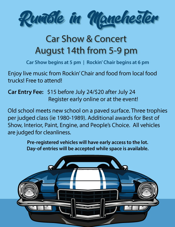 Three plaques per judged class (ie 1980-1989), with one winner and two runner ups. Additional trophies for Best of Show, Interior, Paint, Engine, and People’s Choice. All vehicles are judged for cleanliness. Enjoy live music from Rockin' Chair and food from local food trucks!