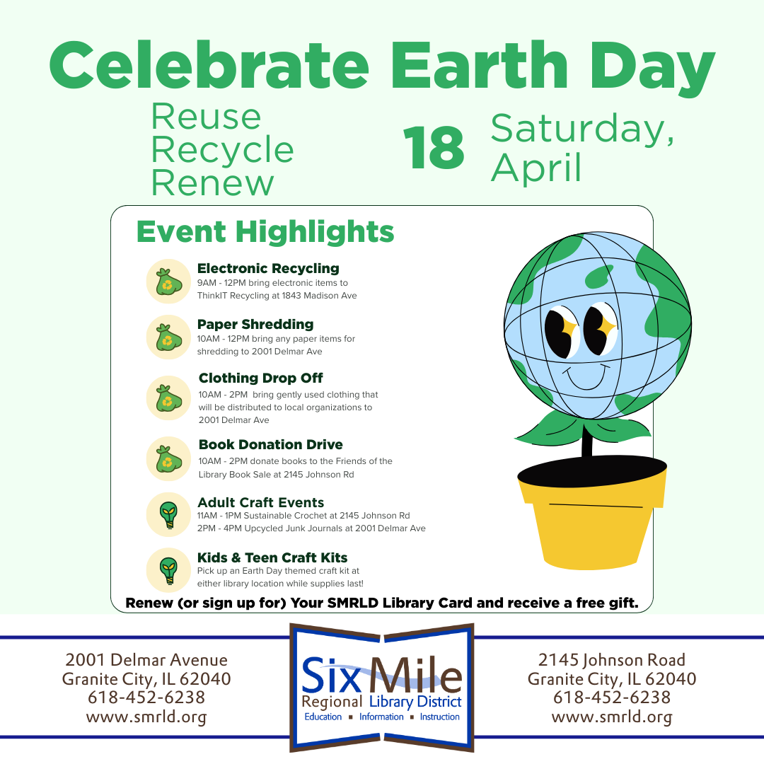 Kids & Teen Craft Kits: Pick up an Earth Day themed craft kit at either library location while supplies last!