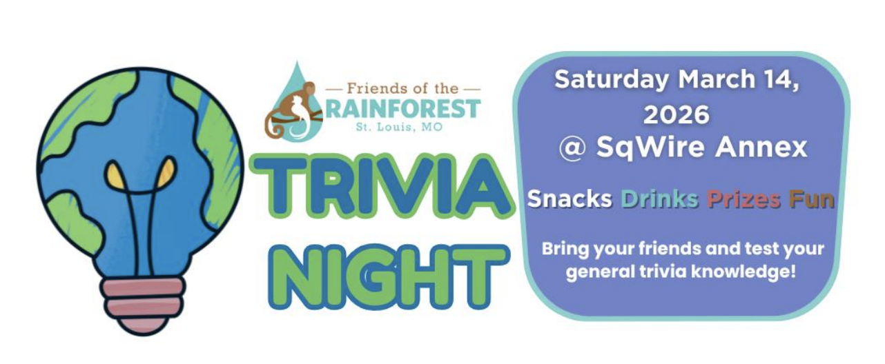 Friends of the Rainforest Trivia Night is at 6 p.m. on Saturday, March 14 at Sqwires Annex, 1415 South 18th Street in St. Louis. Individual and table options available at friendsoftherainforest.networkforgood.com/events/93820-friends-of-the-