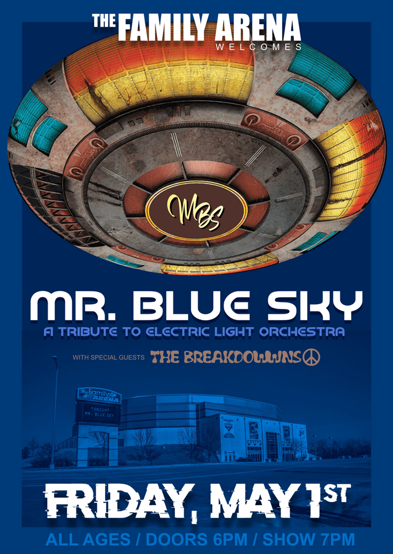 Mr. Blue Sky - A Tribute to Electric Light Orchestra is at 7 p.m. (doors open at 6 p.m.) on Friday, May 1 at the Family Arena, with special guest The Breakdowns. Tickets are $18.55 but free tickets are available at facebook.com/people/Mr-Blue-Sky-A-Tribute-to-ELO/61557615115016/. For details, visit ticketmaster.com/mr-blue-sky-a-tribute-to-saint-charles-missouri-05-01-2026/event/0600645B1562BB69.