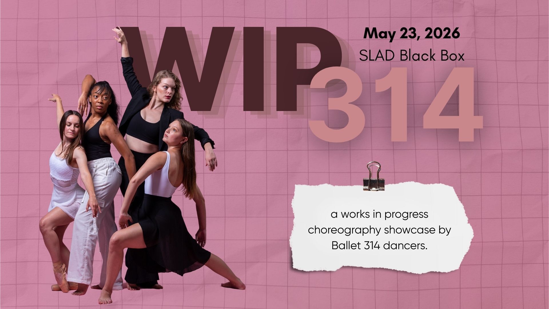 Ballet 314 invites you to WIP 314, the company's inaugural in-company choreography incubator, showcasing the next generation of dance makers in an intimate, in-progress setting. On May 23, eight choreographers, Megan Buckley, Eugenia Jones, Rachel Colombe, Maura Caldwell-Thompson, Abbie Hinrichs, Kendall Dietrich, Ashley Stettes, and Bella Schmitt, present original works developed through Ballet 314's first-of-its-kind creative development program. Performances at 5:00 and 7:00 PM, with a post-show reception following the 7:00 PM show. Tickets are $25-$35 and every purchase directly supports the artists and Ballet 314's mission to create meaningful opportunities for emerging talent. Runtime is approximately one hour. St. Louis Academy of Dance Black Box, 9656 Olive Blvd, Olivette, MO 63132. Tickets and info at www.ballet314.org/wip314.