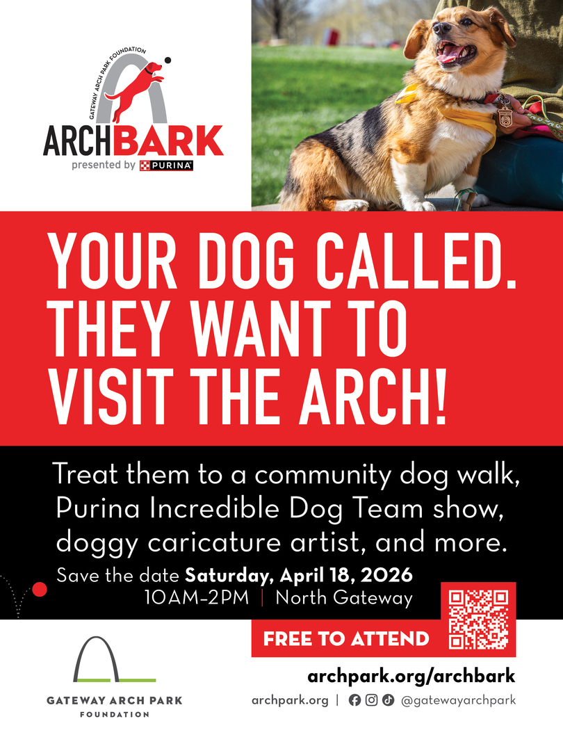 Arch Bark is back on Saturday, April 18, 2026, and it's the most tail-wagging day of the year. From 10 a.m. to 2 p.m., Gateway Arch National Park transforms into St. Louis's ultimate dog-friendly celebration, free for every pup and their person.