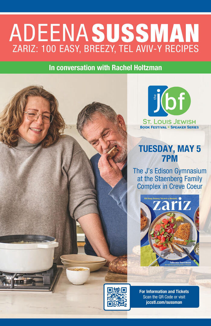 The St. Louis Jewish Book Festival Speaker Series continues from 7-9 p.m. on Tuesday, May 5 at The J Staenberg Family Complex, 2 Millstone Campus Drive in Creve Coeur, featuring a conversation with Adeena Sussman, author of Zariz: 100 Easy, Breezy, Tel Aviv-y Recipes. Pandemics, wars and the busy pace of life led Sussman to a streamlined cooking approach embodied in the Hebrew word for quick, zariz, in her newest cookbook. Tickets start at $48. For details, visit jccstl.com/event/adeena-sussman-a-jewish-book-festival-speaker-series-event.