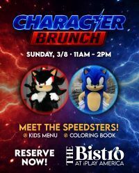 Brunch with these High-Speed Heroes at The Bistro! Join us Sunday, March 8th from 11AM–2PM for speedy smiles, table visits, and photo ops.