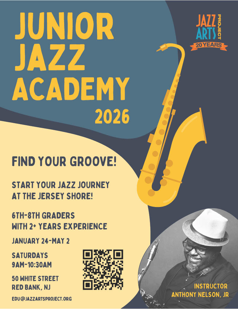 Classes are Saturdays 9am - 10:30am, starting January 24, 2026, and ending with a student showcase concert on May 2nd. Our unique program introduces students to all aspects of jazz, including history, styles, performance techniques, standard repertoire, ensemble playing, and improvisation. We emphasize hands-on learning and collaboration, with instruction from a professional jazz musician, Anthony Nelson, Jr.