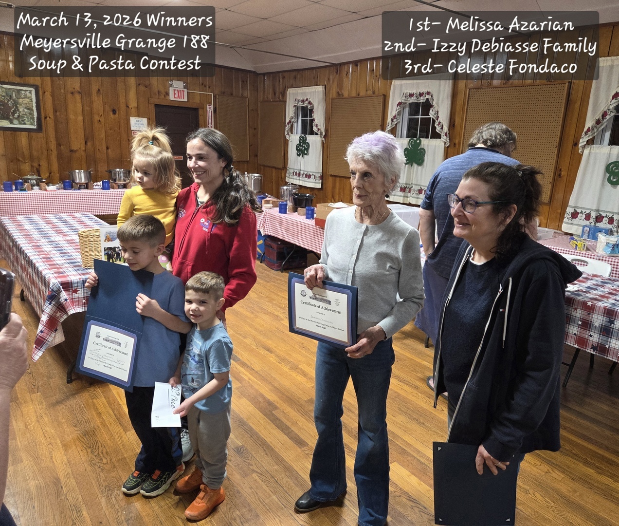 YOU ARE INVITED to Our SOUP and PASTA CONTEST at Meyersville Grange188, 500 Meyersville Road, Gillette, NJ at 6:30pm on April 10, 2026.