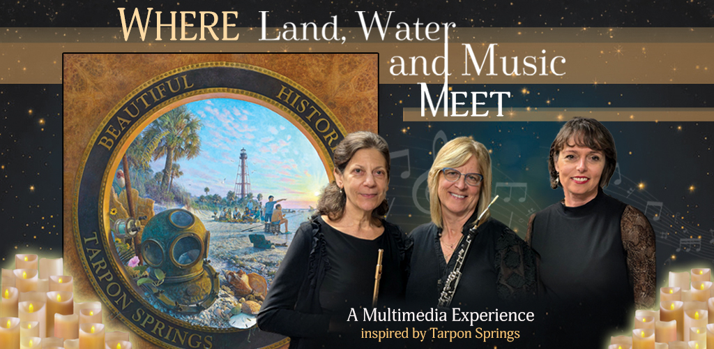 The concert performance of Where Land, Water and Music Meet will begin at approximately 7:30 PM. Surrounded by candlelight, Amici will perform the title composition as Still’s paintings are projected in the background and narrative insights are provided by Susan Giles Wantuck, providing a dynamic dialogue between the music and art. The result is an intimate, layered experience that connects sound, visual art, and a sense of place in a setting that reflects Tarpon Springs’ rich cultural heritage.