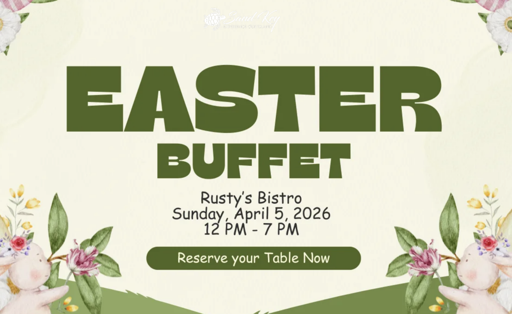 Come join us for Easter brunch at Rusty’s Bistro, located at the Clearwater Beach Sheraton Resort on Sand Key. Enjoy seasonal favorites, delicious coastal flavors, and beautiful beach views for a festive and memorable holiday celebration.