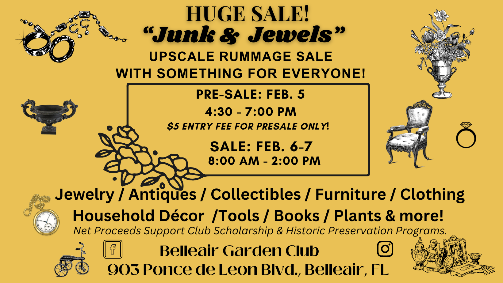 Don't miss out on the excitement and community spirit of this highly anticipated event! There will be lots of great deals, something for everyone, and it benefits a good cause! Proceeds help support the Scholarship and Historic Preservation Programs and other Belleair Garden Club missions.