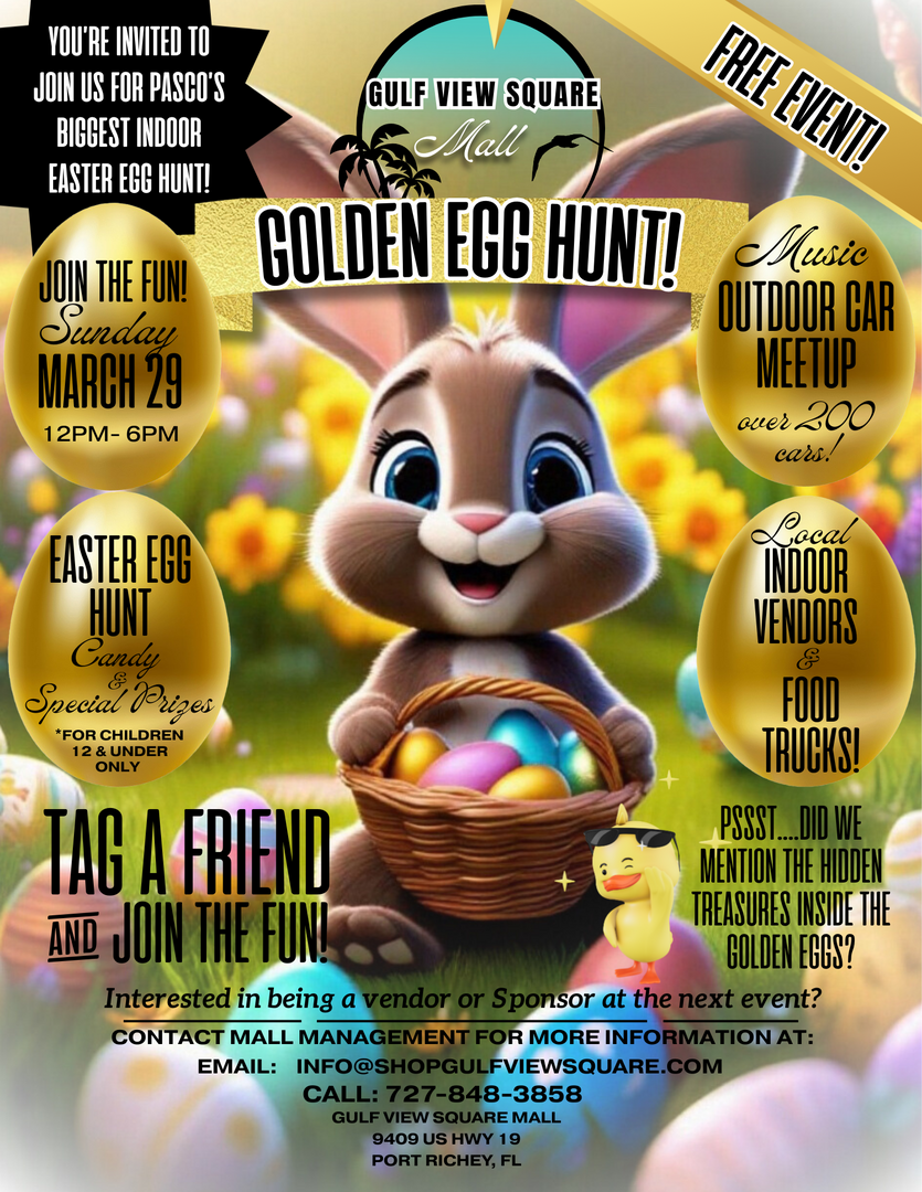 We are excited to invite you to Pasco County's largest indoor Easter egg hunt on March 29th, 2026! Come celebrate a day of wholesome fun right here at Gulf View Square Mall.