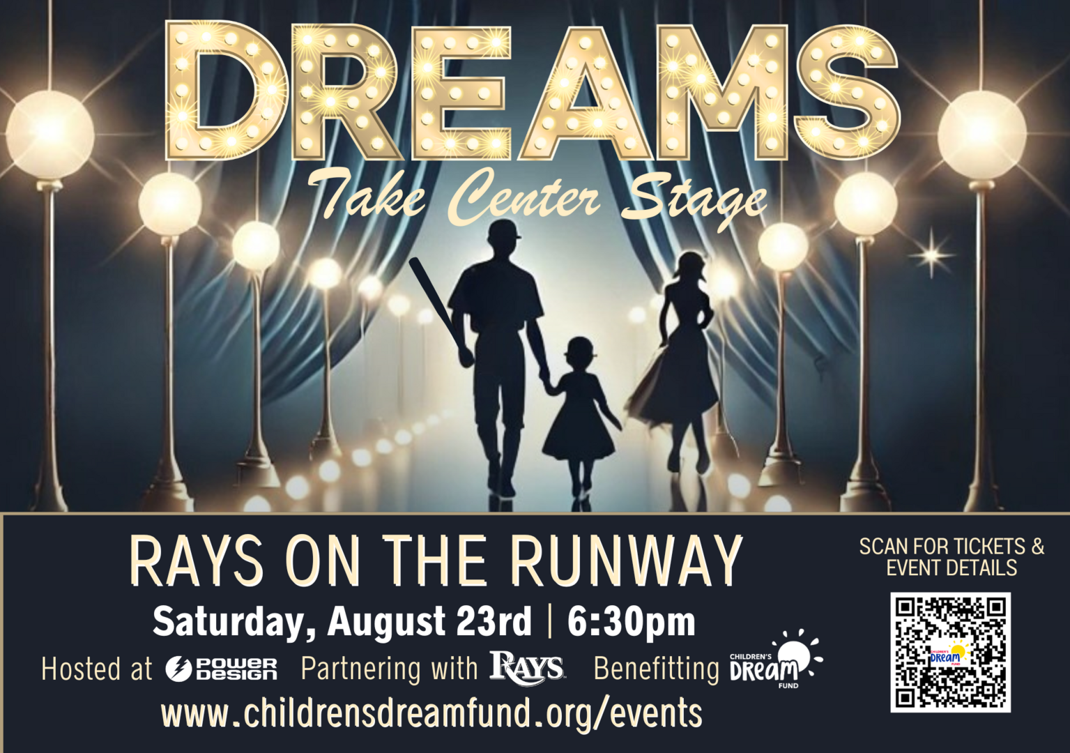 On Saturday, August 23, 2025, from 6:30PM to late, the runway at Power Design in St. Pete will come alive as 15 of our incredible Dream children walk alongside Tampa Bay Rays players, celebrating courage, hope, and of course – style.