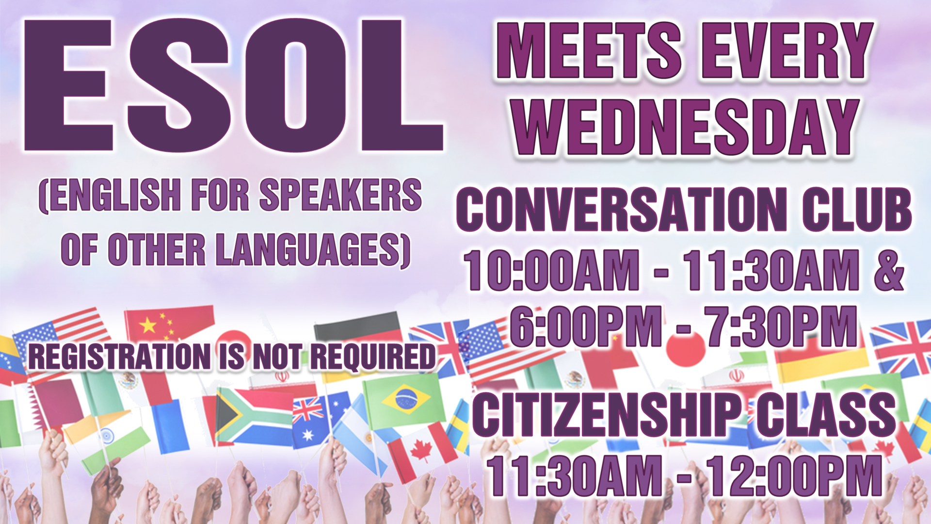 All ESOL Conversation Clubs and Citizenship Preparation Classes are free and held at the Safety Harbor Public Library.