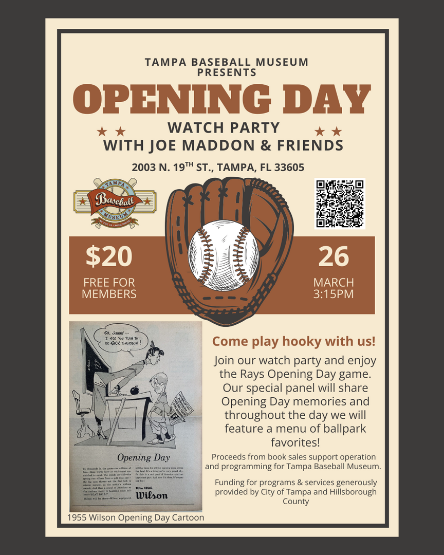 Join our watch party and enjoy the Rays Opening Day game. Our special panel