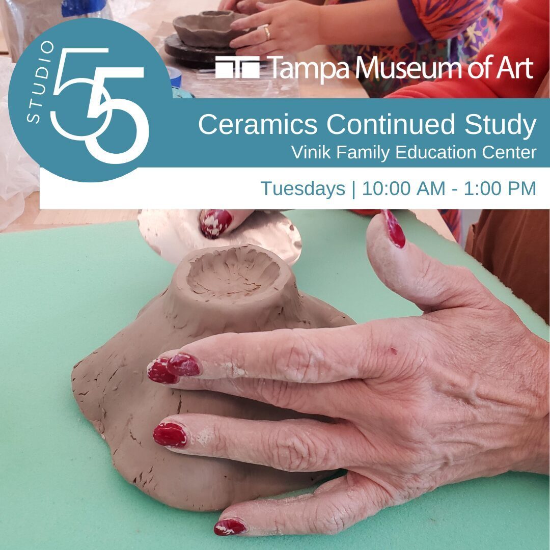 Ceramics Continued Study is a space for students to enhance their learning experience with instructor assistance and guiding knowledge. Sign up for a single class to continue working and add the finishing touches on projects you've started in one of our other classes. Sign up for multiple classes to choose your own adventure in hand-building or wheel thrown ceramics. Work with your instructor to plan out your projects and make them a reality. Some experience with clay is recommended. 55+ Beginner-Intermediate