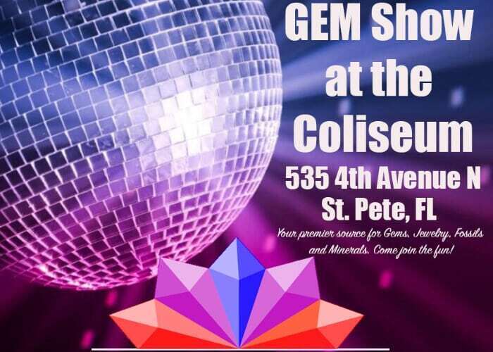 Annual Winter Gem Show with 15,000 sq ft of fabulous vendors of Jewelry, Crystals, Beads, Minerals, Fossils and so much more! Forty vendors from all over the country all in one place for your viewing and shopping pleasure! All of this bounty celebrated at the historic St Petersburg Coliseum, Florida's oldest air-conditioned venue. Join us for the days; Friday, Saturday and Sunday, January 9-11, 2026, 10 am - 5 pm daily. One admission good for all three days! Free parking, concession available.
