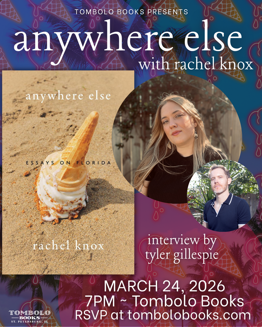 Rachel Knox is a writer born and raised in Tampa Bay. She teaches writing at the University of South Florida and is a bookseller at Tombolo Books in St. Petersburg.