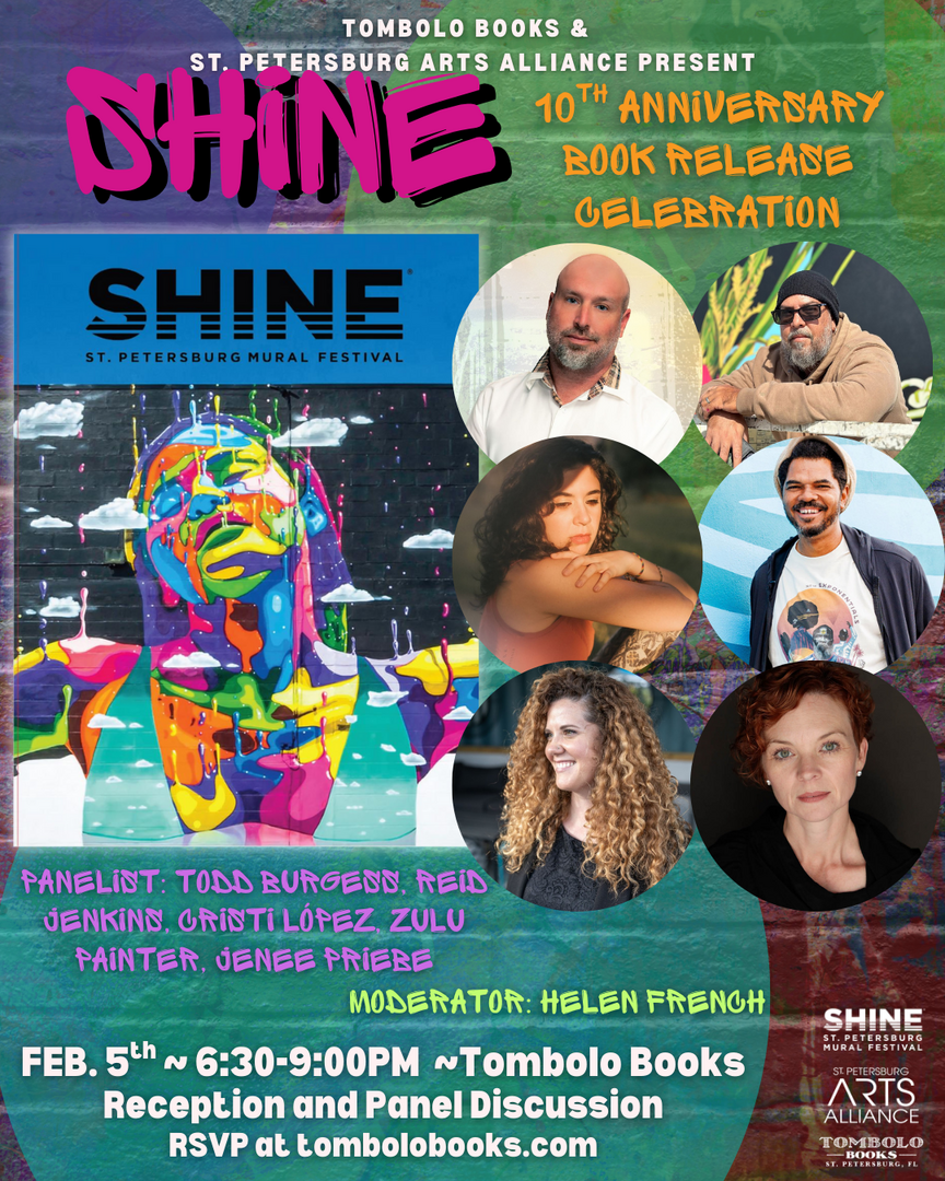 7:30–8:30 PM Panel discussion with SHINE artists, photographers, and program leaders celebrating the creation of this commemorative book and the stories behind capturing 10 years of vibrant street art.