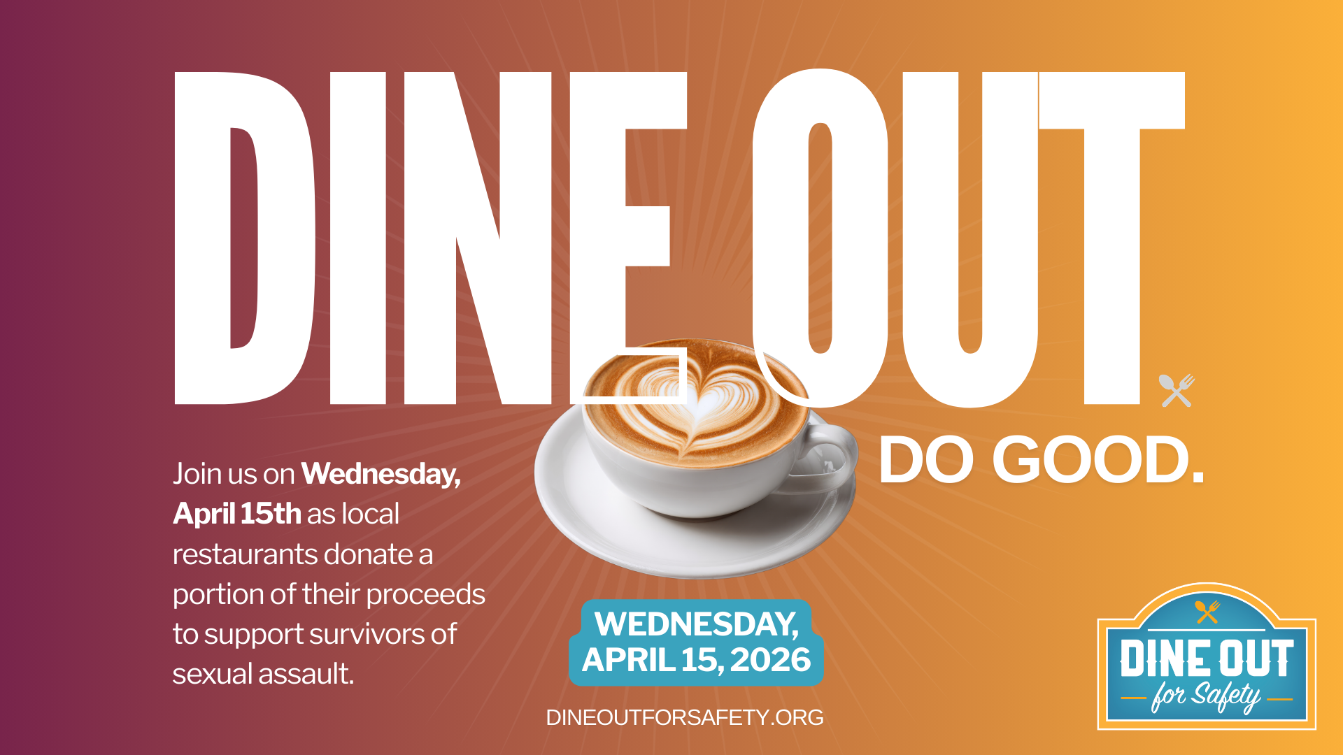 When you dine — or get coffee or a drink — at any participating location, a portion of proceeds from your purchase goes directly to SACASA, helping provide 24/7 crisis care, medical forensic exams, advocacy, therapy and healing — all at no cost to survivors.