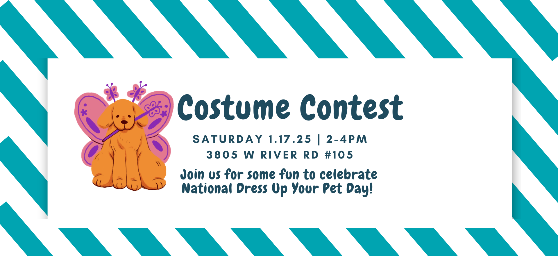 We'll be hosting a fun costume contest to celebrate National Dress Up Your Pet Day! Join us for some fun and use any theme you like.