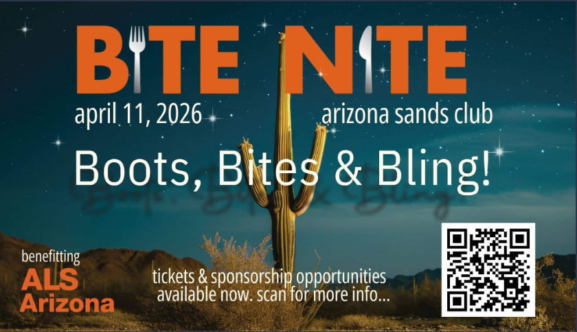 Join ALS Arizona for the 13th Annual Bite Nite Gala on Saturday, April 11, 2026, at the Arizona Sands Club in Tucson-an award-winning culinary celebration that brings our community together in support of individuals and families impacted by ALS.